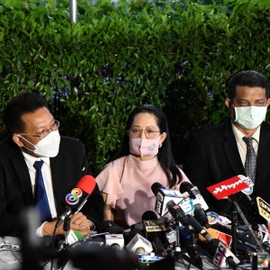 นางภนิดา ศิระยุทธโยธิน แม่ของนักแสดงสาวแตงโม นิดา พร้อมทนายความเข้ารับฟังการชี้แจงผลชันสูตรศพแตงโม นิดา ของทีมแพทย์นิติเวช โรงพยาบาลตำรวจ