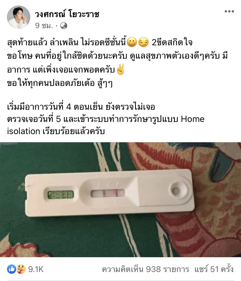 ไม่รอดอีกคนแล้ว สำหรับ นักร้องหนุ่ม ลำเพลิน วงศกร ที่ล่าสุดเจ้าตัวโพสต์ภาพผลตรวจ ATK ที่ปรากฏแถบสีแดง 2 ขีดชัดเจน พร้อมขอโทษคนที่อยู่ใกล้ชิด