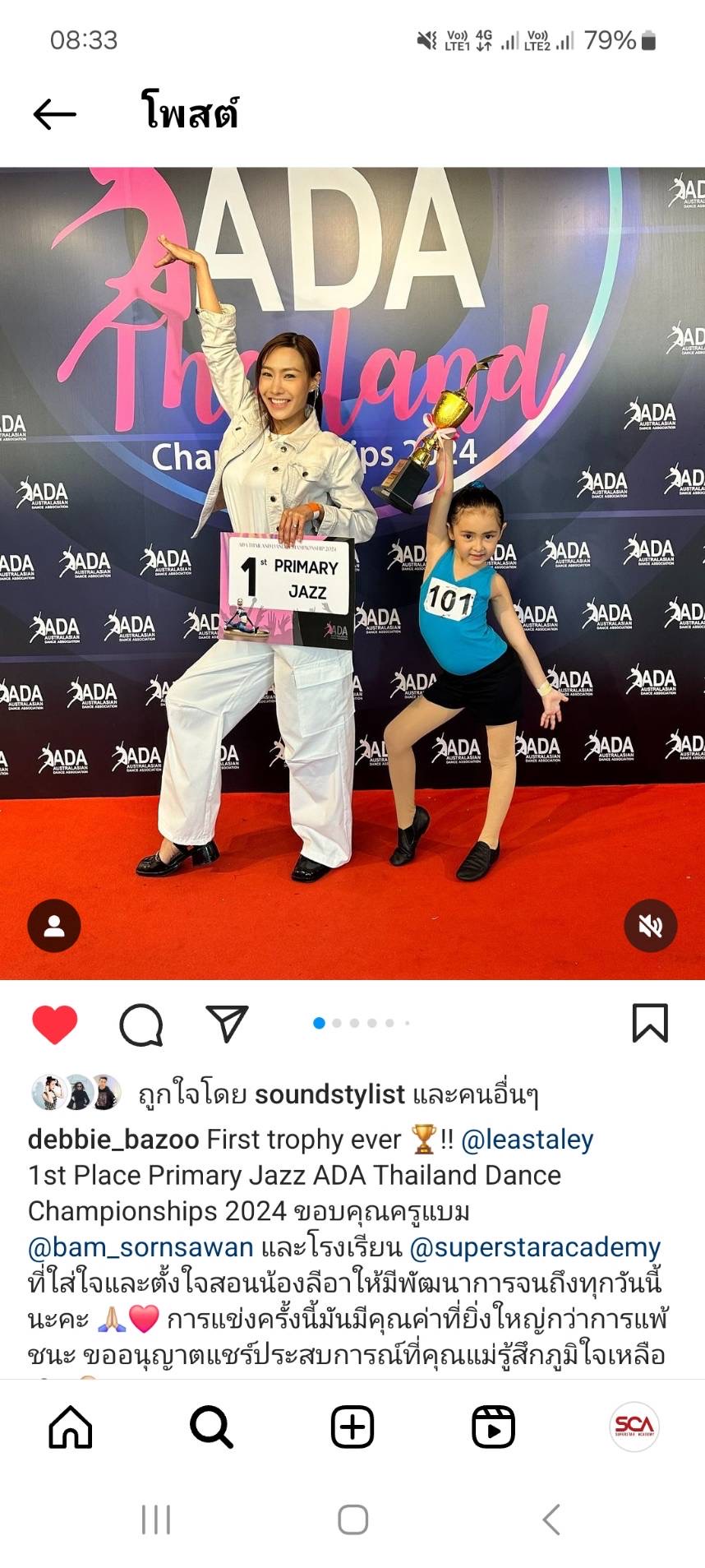“เด็บบี้-เดบาร่าห์ ซี เวชชาชีวะ” นักร้องขาแดนซ์ยุค 90วง “BAZOO” ส่งลูกสาวน้อง “ลีอา” เรียนบัลเล่ต์ที่ SCA Superstar Academy ลงแข่งขันคว้ารางวัล 1st Place Primary Jazz ADA Thailand Dace Championship 2024