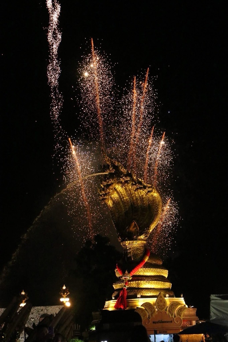 เวลา 19.00 น. ณ ริมฝั่งโขงด้านหน้าสำนักงานการท่องเที่ยวแห่งประเทศไทย สำนักงานนครพนม นายปราชญา อุ่นเพชรวรากร ผู้ว่าราชการจังหวัดนครพนม พร้อมด้วย นางธนวัน อุ่นเพชรวรากร