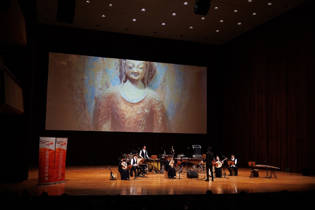 นอกจากนี้ในการแสดงฯ ยังได้นำเสนอผลงานต้นฉบับเจ็ดชิ้น ซึ่งแต่งโดยนักประพันธ์ประจำวง อาทิ คุณกัม ชิง เฮย และคุณชู ไค หยาง ที่ได้รับแรงบันดาลใจจากภาพเขียนฝาผนังตุนหวง และโบราณวัตถุในพิพิธภัณฑ์ โดยได้มีการผสานภาพประกอบเข้าด้วยกัน สร้างสรรค์ประสบการณ์ทั้งด้านเสียงและภาพ กระตุ้นจินตนาการและอารมณ์ความรู้สึกต่อศิลปะวัฒนธรรมจีน